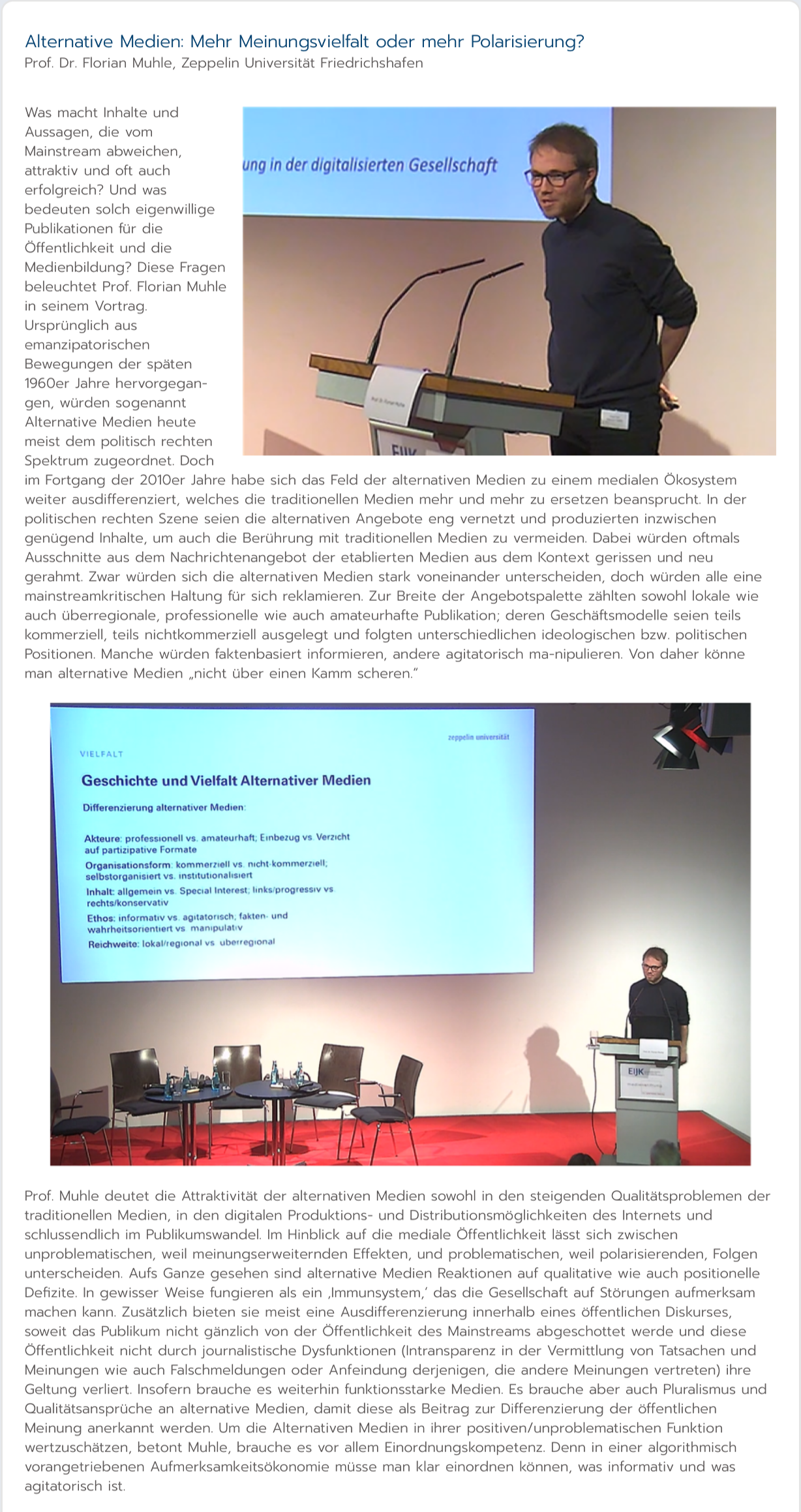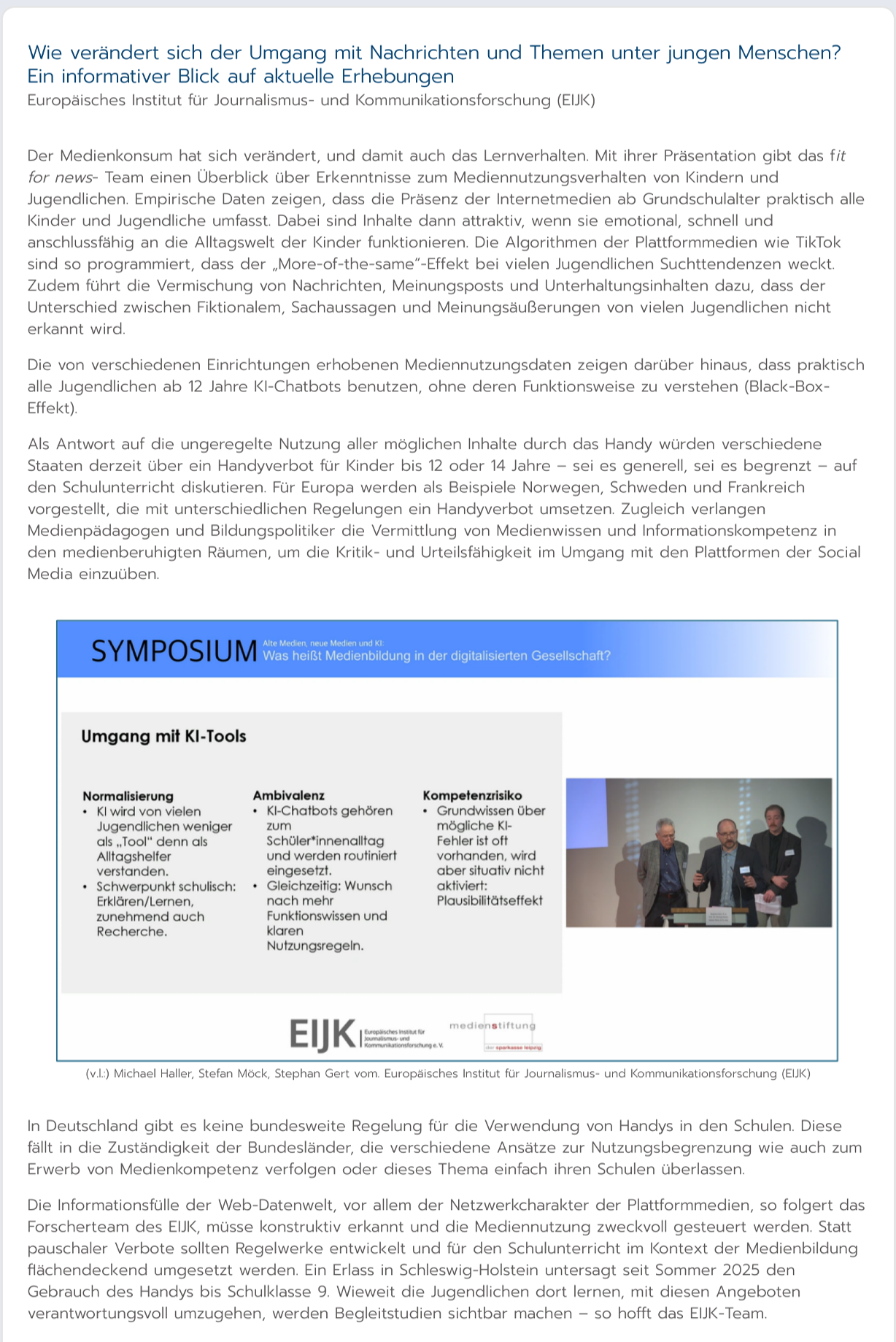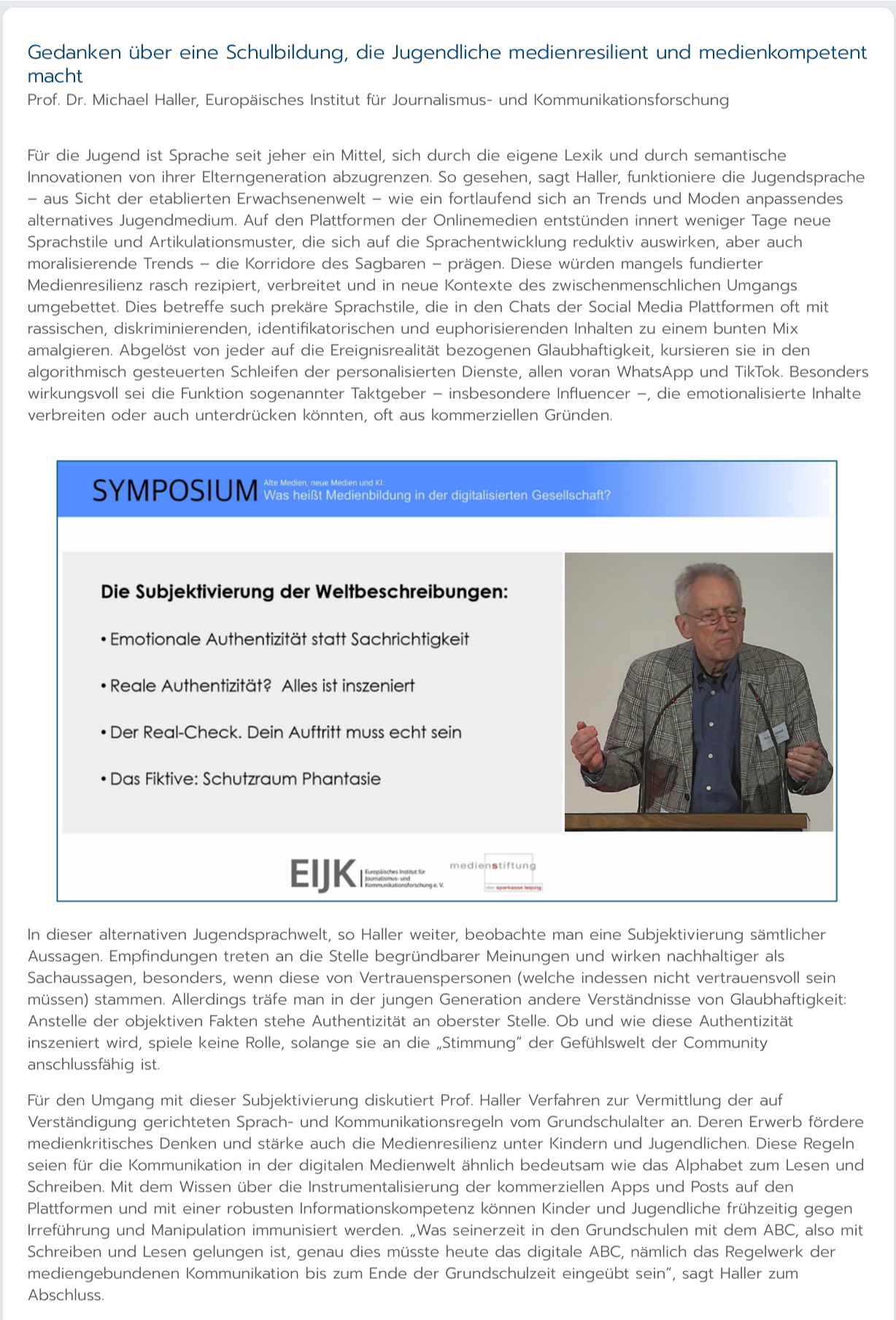 EIJK-Mitarbeiter Philipp Clausberg berichtet nachfolgend über die Tagungsvorträge und fasst deren Kernaussagen zusammen. Das Tagungsprogramm finden Sie HIER.